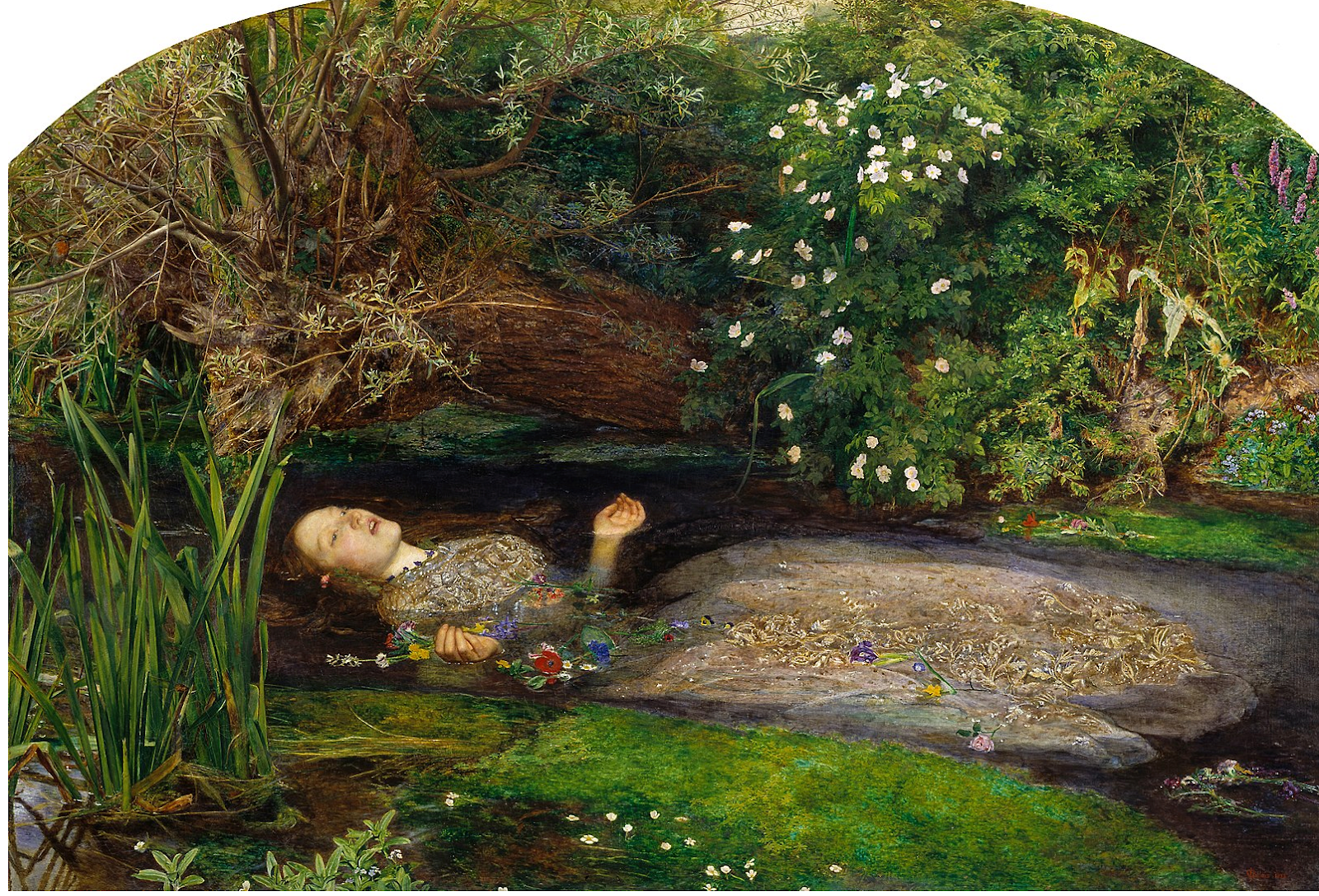 Long before social media and Del Rey, the visual trope of the sorrowful, fragile, hauntingly beautiful women was being painted by artists in the nineteenth century. John Everett Millais’ Ophelia (1851–1852) was inspired by Shakespeare’s tragic heroine of the same name. The painting shows a young woman suspended between life and death, drifting through a river with flowers scattered around her. Her expression is vacant, her body almost weightless, and the entire scene transforms her despair into this soft, lyrical, and strangely serene. Art historians often note that Ophelia “dies while still very young,” her grief romanticised rather than understood.